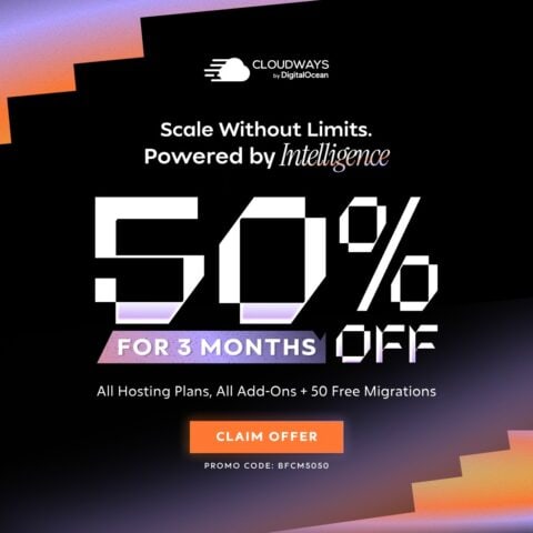 Avail the biggest sale on Cloudways and Get 50% off for 3 months on all plans and premium add-ons + 50 Free Migrations